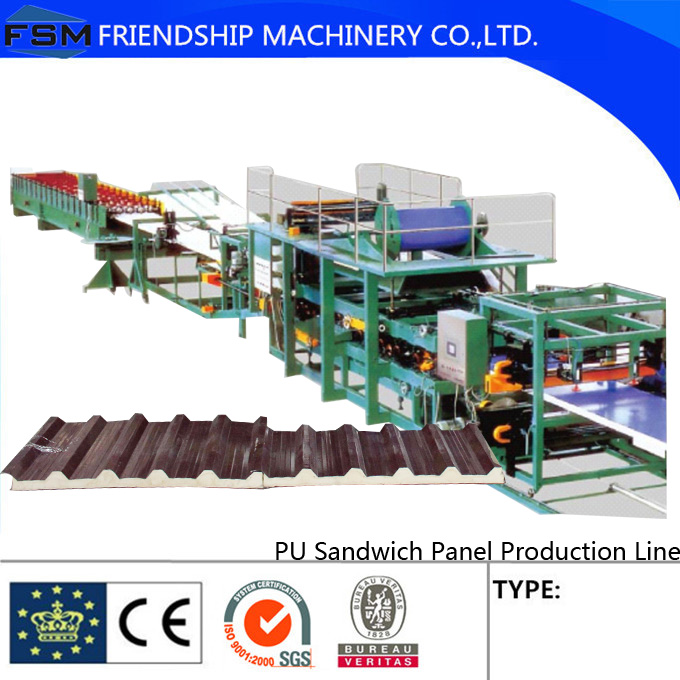 5 Ribs Covered 1000mm PU Sandwich Panel Production Line With Double-Belt Conveyor Images